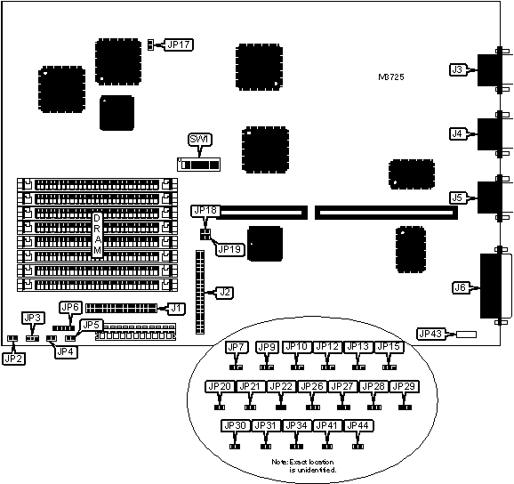 | Select color display emulation on monochrome monitor | JP29 | Pins 1 & 2 closed | |