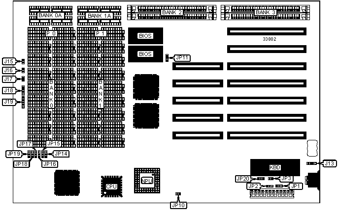 | BIOS type select 27512 | JP11 | Pins 2 & 3 closed | |
