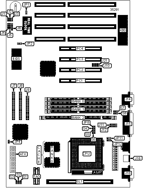 32-bit PCI slots (4), floppy drive interface, IDE interface (2), parallel port, PS/2 mouse port, serial ports (2), cache slot, IR connector, USB connector (2)