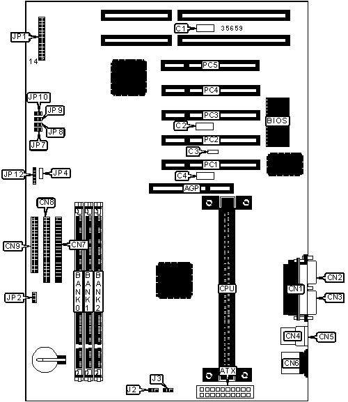 | IDE interface 1 | CN7 | 32-bit PCI slots | PC1 – PC5 |