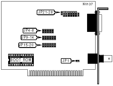 | Note:If the card is on either end of a linear bus network segment, the onboard terminator may be used instead