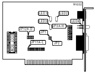 | LED3 | Red | On | Card is continuously transmitting, jabbering |