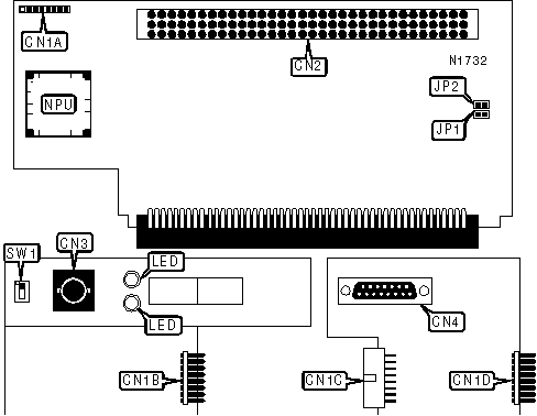 | Daughterboard header | CN1A | PDS slot for additional card | CN2 |