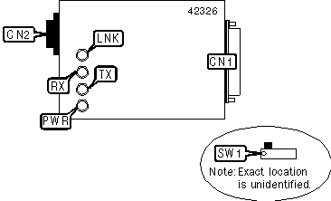 | AUI transceiver via DB-15 | CN1 | RJ-45 UTP connector | CN2 |