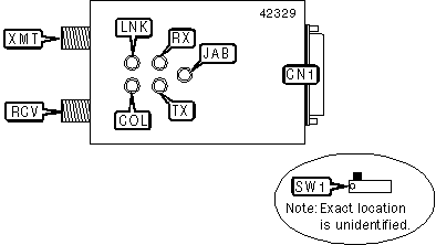 | AUI transceiver via DB-15 | CN1 | Fiber optic connector (SMA) - receive | RCV |