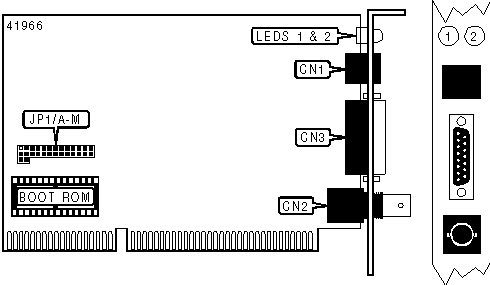 Unshielded twisted pair AUI transceiver via DB-15 port RG-58A/U 50ohm coaxial Linear Bus, Star |