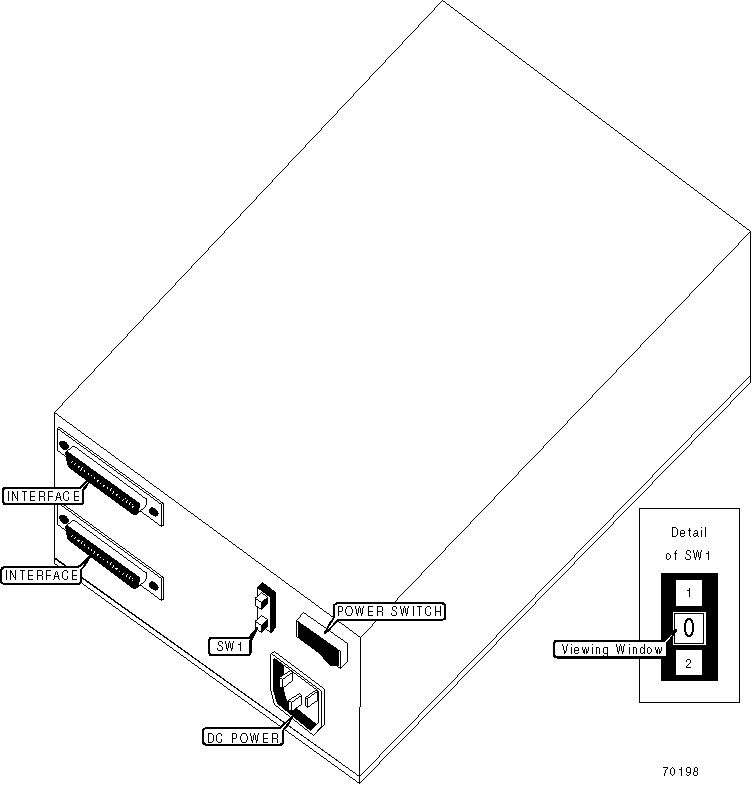 Note: SCSI ID is selected by activating SW1 until the desired ID number is displayed in the viewing window. In addition, ID’s 8 & 9 are factory configured - do not alter.