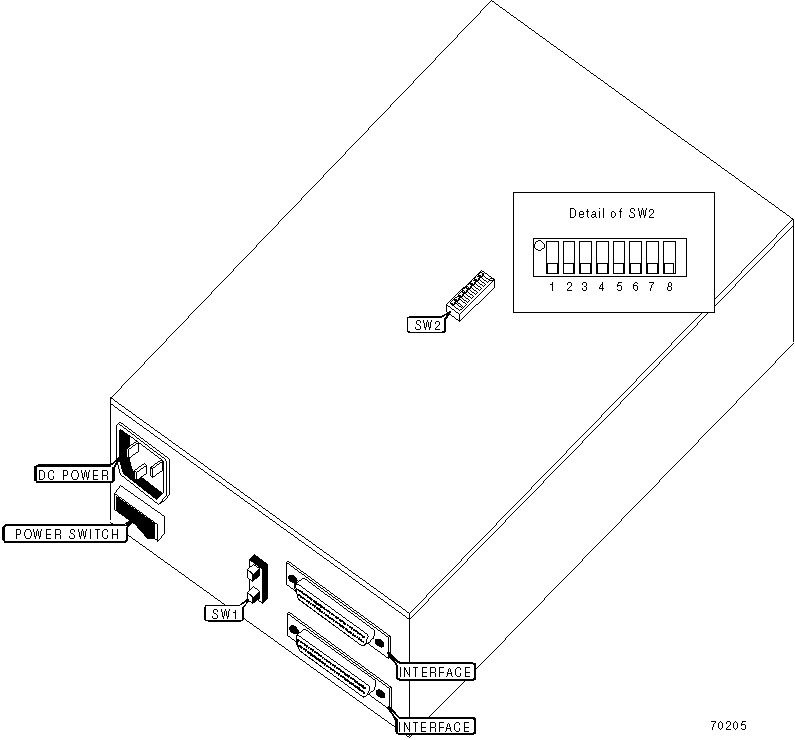 Note: To configure the tape drive's SCSI ID, you must set SW1 to the desired ID number. The SCSI ID number is viewable through the viewing window on SW1. The address is shown in hexadecimal form.
