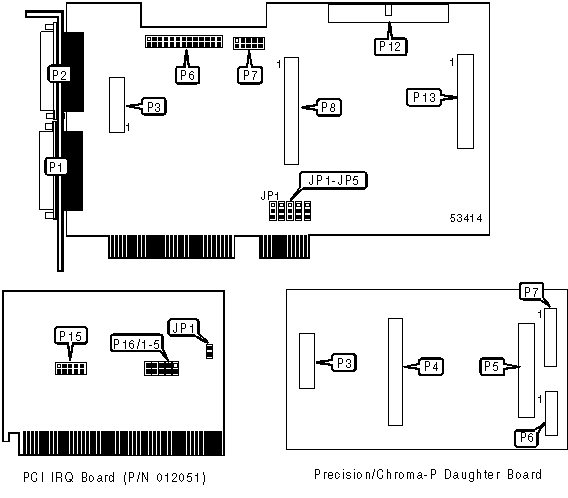 | 15-pin analog video port - output | P1 | PCI IRQ board connector | P7 |